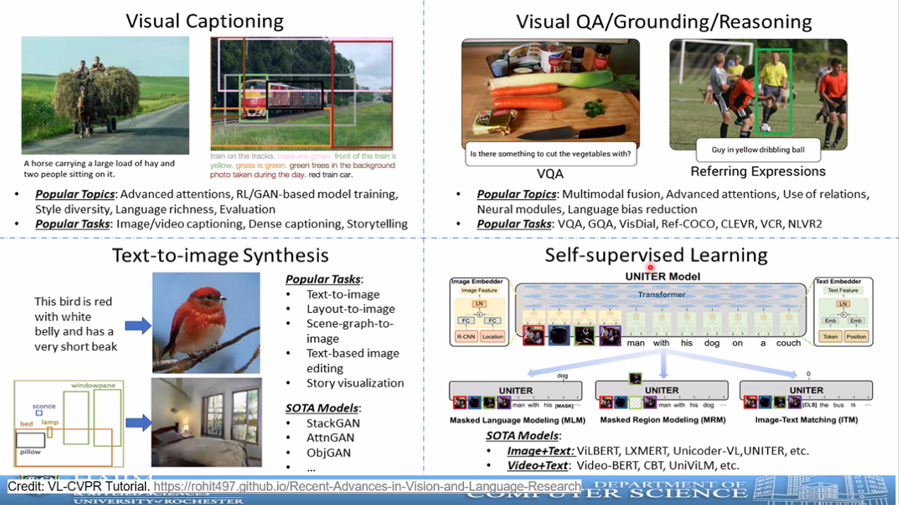 罗教授首先介绍了计算机视觉和自然语言处理两个领域交叉研究的研究范畴,接着分别从视频语言对齐、图像和视频字幕、视觉问答、图像检索、图像生成和多模态机器翻译等任务进行了论述,并对任务的原理和最新进展进行了介绍。最后,罗教授展望了未来的发展方向和值得深入研究的技术领域,大家收获颇丰。